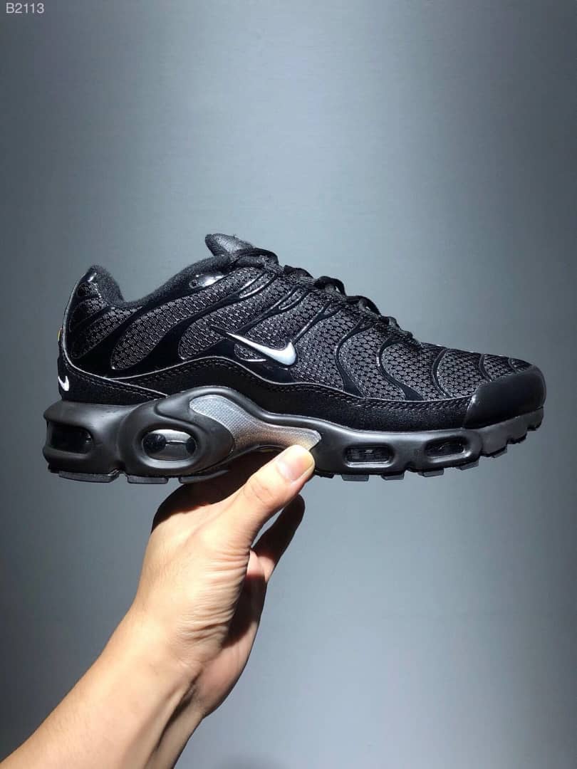 Nike Air Max Plus TN Small Air Cushioned Minimalist Mesh Comfortable Breathable Low-Top Shock-Absorbing Wear-Resistant Non-Slip Running Shoes for Men, Black and Silver